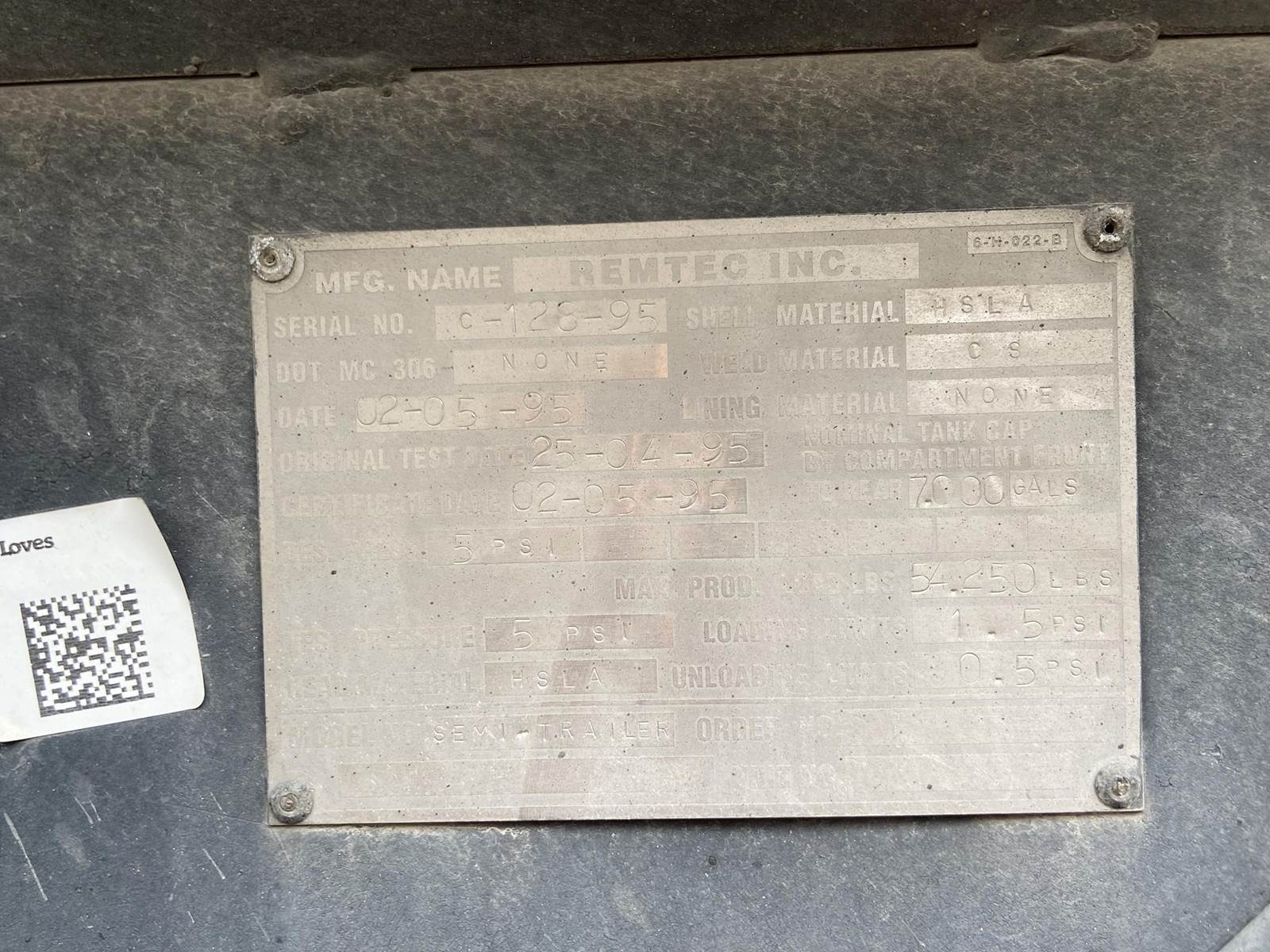 1995 Remtec 7000 GALLON Asphalt / Hot Oil Tank Trailer